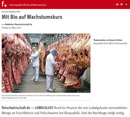 afz.fleischwirtschaft.de — LUWIGSLUST Rund 60 Prozent der von Ludwigsluster vermarkteten Menge an Frischfleisch und Fleischwaren hat Bioqualität. Und die Nachfrage steigt stetig. Zum vollständigen Artikel
